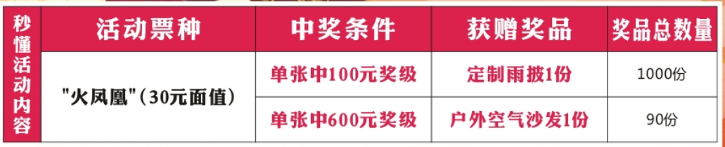 為回饋廣大購彩者對中國體育彩票的支持與厚愛,河南省體育彩票管理中心周口分中心在2023年5月22日—2023年6月30日針對體彩頂呱刮新票“火鳳凰”開展促銷活動,體彩頂呱刮新上市票種30元面值“火鳳凰 ”攜精美好禮,重磅來襲。具體內(nèi)容如下: