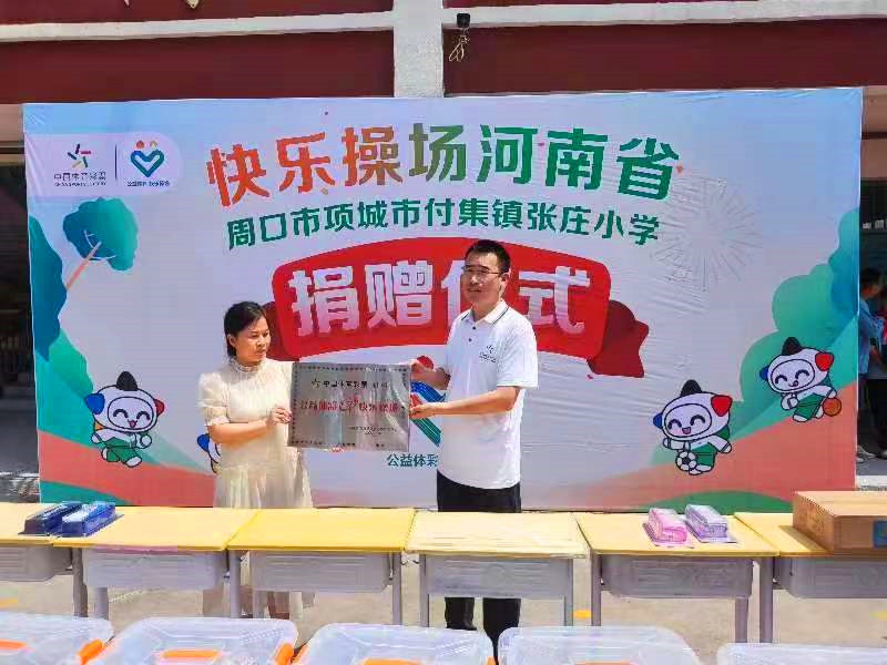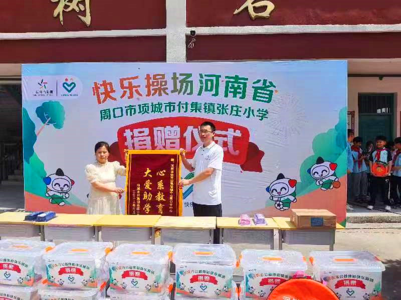 “公益體彩獻(xiàn)愛(ài)心,快樂(lè)操場(chǎng)進(jìn)校園”。6月20日,“公益體彩 快樂(lè)操場(chǎng)”走進(jìn)項(xiàng)城市付集鎮(zhèn)張莊小學(xué)開(kāi)展公益捐贈(zèng)活動(dòng)。學(xué)校負(fù)責(zé)人將錦旗送到周口體彩分中心副主任孫海永手中,對(duì)該中心的善舉表達(dá)了衷心感謝。