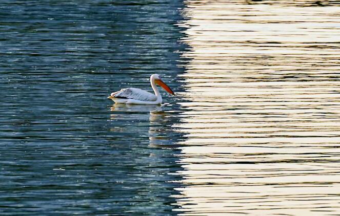 近日,在淮陽區(qū)龍湖國家濕地公園的東南部弦歌湖,首次發(fā)現(xiàn)世界瀕危鳥類——鵜鶘。