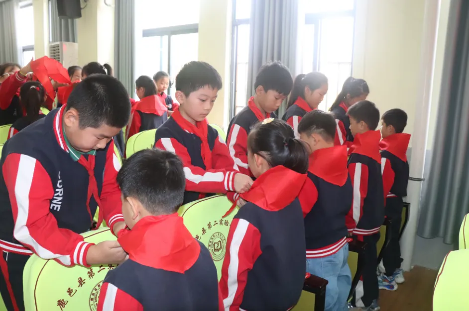 儀式上,該校副校長(zhǎng)肖東旭宣布新隊(duì)員名單,230名同學(xué)加入中國(guó)少年先鋒隊(duì),成為一名光榮的少先隊(duì)員。緊接著,四年級(jí)優(yōu)秀隊(duì)員代表莊重地為新隊(duì)員代表系上鮮艷的紅領(lǐng)巾。在大隊(duì)長(zhǎng)的帶領(lǐng)下,全體隊(duì)員在隊(duì)旗下莊嚴(yán)宣誓。少先大隊(duì)委員熱烈歡迎新隊(duì)員加入。