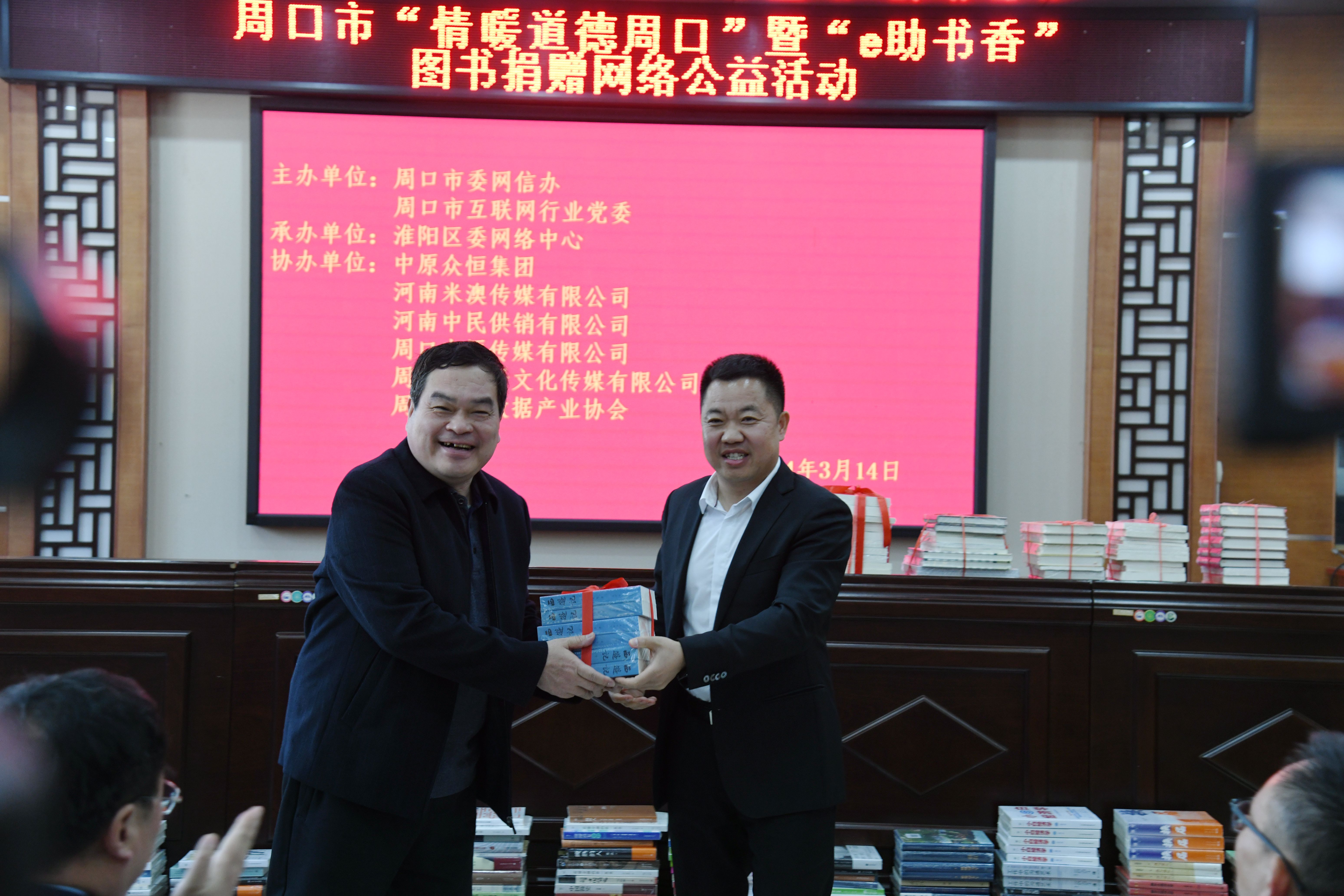 3月14日,由周口市委網(wǎng)信辦、周口市互聯(lián)網(wǎng)行業(yè)黨委主辦的“情暖道德周口”暨“e助書香”圖書捐贈網(wǎng)絡(luò)公益活動在淮陽區(qū)舉行。我市6家愛心企業(yè)聯(lián)合捐贈一批圖書,為正在火熱進(jìn)行的伏羲書展助上一臂之力。