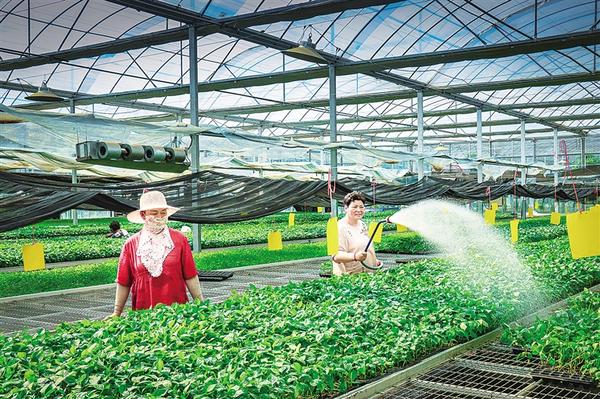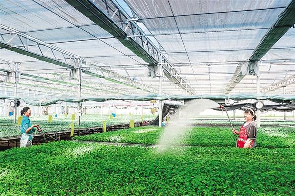 連日來,河南農(nóng)業(yè)大學(xué)扶溝蔬菜研究院的工作人員多次為蔬菜種苗噴水降溫。為降低高溫對蔬菜種苗造成的不利影響,該院采取多種措施為大棚降溫,保證蔬菜種苗健康成長。谷志方 攝