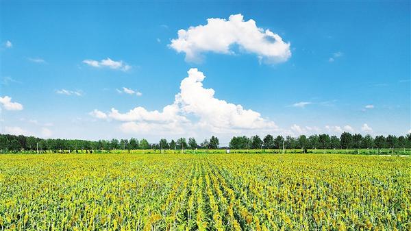 8月17日,扶溝縣藍(lán)天白云下的秋季作物生機(jī)勃勃,孕育著豐收的希望。黃金峰 攝