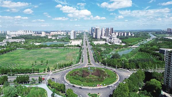 近年來,我市城市建設取得顯著成效。圖為藍天白云映襯下的周口市城鄉(xiāng)一體化示范區(qū)。 記者 梁照曾 攝