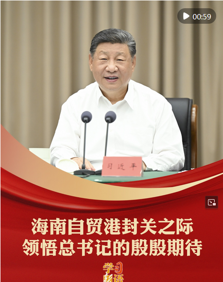 12月18日,海南自由貿易港正式啟動全島封關。建設海南自由貿易港,是習近平總書記親自謀劃、親自部署、親自推動的改革開放重大舉措。封關之際,讓我們領悟習近平總書記的殷殷期待,為把海南自由貿易港打造成為引領我國新時代對外開放的重要門戶加油。