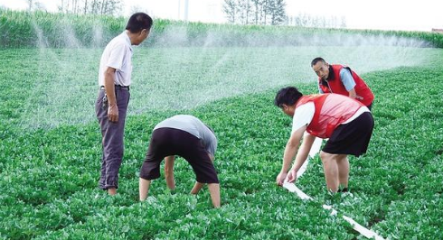 7月29日,在項城市秣陵鎮(zhèn)夏營行政村種糧大戶夏滿倉的農(nóng)田里,兩臺卷盤式噴灌機正開足馬力作業(yè)。隨著機器勻速移動,細(xì)密的水霧均勻覆蓋秋作物,田間呈現(xiàn)一派生機勃勃的景象。