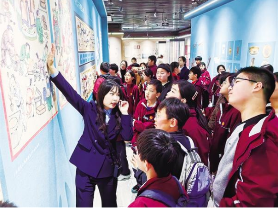 近日,周口市文昌小學(xué)六年級(jí)九班的同學(xué)們?cè)谡J(rèn)真聆聽(tīng)講解員講述中醫(yī)藥知識(shí)。