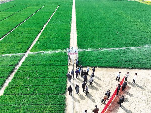 設施農業(yè)看泛區(qū)。近日,黃泛區(qū)農場一企業(yè)自主研發(fā)的小型自走式澆地機備受種植大戶關注。