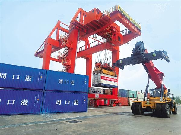 5月17日,“國控·首航號”集裝箱貨船從周口中心港范營作業(yè)區(qū)起航,將我省生產(chǎn)的無煙煤運往日本。本航班通過“散改集”開創(chuàng)了周口港集裝箱裝煤模式,為煤炭運輸方式的創(chuàng)新提供了新思路和新實踐。