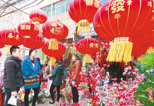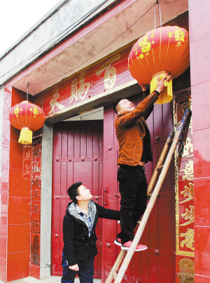 ?、儋N對聯(lián),掛燈籠,喜迎新春。    (記者 王映 攝)