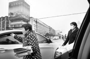 圖①  中心城區(qū)每個(gè)路口都存在不同程度的攔車散發(fā)傳單現(xiàn)象,既不文明又不安全。