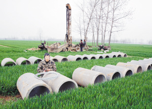?、?月23日,扶溝縣大李莊鄉(xiāng)常崗村村民正在田間打井。入春以來(lái),大李莊鄉(xiāng)利用爭(zhēng)取到的資金,大力實(shí)施基本農(nóng)田灌溉工程,切實(shí)解決部分農(nóng)田地塊的澆灌難題,為奪取夏糧豐收奠定扎實(shí)基礎(chǔ)。