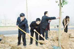 在全區(qū)多個(gè)植樹點(diǎn),區(qū)四大班子領(lǐng)導(dǎo)與全區(qū)各單位干部職工加入到植樹護(hù)綠的行動(dòng)中(如圖)。為確保植樹造林活動(dòng)有效開展,川匯區(qū)委、區(qū)政府向48家區(qū)直單位下達(dá)了義務(wù)植樹任務(wù)通知書,任務(wù)實(shí)施單位包苗木、包栽植、包成活、包管護(hù)。2015年,川匯區(qū)計(jì)劃造林2749畝,森林撫育及改培造林300畝,新建林業(yè)生態(tài)園1處、花卉苗木基地200畝、綠化社區(qū)及林業(yè)生態(tài)示范村9個(gè),打造創(chuàng)模精品線路1條。