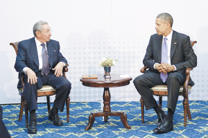 去年12月,美古兩國宣布啟動關系正?;M程。本屆峰會期間,奧巴馬與古巴領導人勞爾·卡斯特羅舉行了兩國斷交半個世紀以來的首次會晤,被認為是近期兩國通過談判推進關系正?;囊淮瓮黄啤?/P>