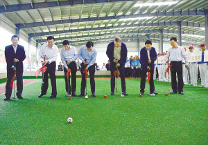 馬憲章為老年門(mén)球比賽開(kāi)球