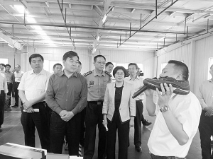 市長(zhǎng)劉繼標(biāo)帶領(lǐng)第二觀摩組在扶溝縣玖弘鞋業(yè)有限公司生產(chǎn)車(chē)間觀摩。