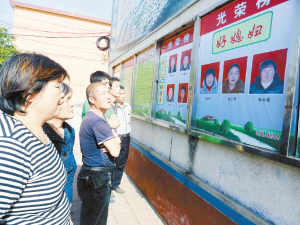 上圖  昨日上午,商水縣巴村鎮(zhèn)上城村村民正在圍觀“好媳婦”、“好婆婆”、“好孝子”光榮榜。據(jù)了解,被評為“全國文明村”、“河南省生態(tài)文明村”的上城村,已連續(xù)3年開展“好媳婦”、“好婆婆”、“好孝子”評選活動。(喬連軍 攝)