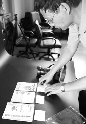 5月26日,上海群眾藝術(shù)館的工作人員在為市民提供的抗戰(zhàn)題材收藏品進行造冊登記。