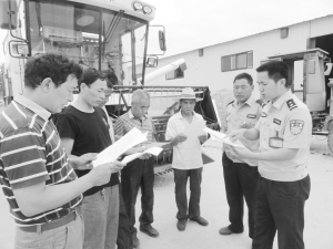 昨日,商水縣舒莊鄉(xiāng)派出所民警正在杜店村遠(yuǎn)豐農(nóng)機(jī)專業(yè)合作社向農(nóng)機(jī)手宣傳“三夏”生產(chǎn)安全知識。為確?!叭摹鄙a(chǎn)安全,舒莊鄉(xiāng)派出所印發(fā)2000份《三夏安全生產(chǎn)知識宣傳單》,組織民警深入田間地頭和農(nóng)家小院向農(nóng)機(jī)手們面對面進(jìn)行安全生產(chǎn)宣傳。(喬連軍 攝)