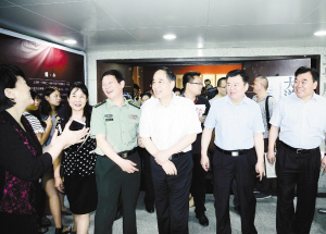 本報訊 (記者 李鳳霞) 6月16日,“大道周口——王學(xué)嶺詩文書作展”繼在國家博物館舉辦后又在河南省美術(shù)館展出。該展覽由中共河南省委宣傳部、中國人民解放軍總參謀部政治部宣傳部、中國書法家協(xié)會、中國國家博物館、中國人民解放軍信息工程大學(xué)、河南省文化廳、中共周口市委、周口市人民政府主辦,中共周口市委宣傳部、周口市文廣新局、周口市文聯(lián)、河南省美術(shù)館承辦。省委常委、省紀委書記尹晉華,省委常委、宣傳部長趙素萍,省人大常委會副主任蔣篤運,省政協(xié)副主席龔立群、靳克文,解放軍信息工程大學(xué)副政委謝怡平,總參警衛(wèi)局原副局長兼政治部主任申學(xué)魁、政治部主任龔光新,武警河南總隊原司令員曹云忠,周口市委書記、市人大常委會主任徐光,市長劉繼標,市政協(xié)主席穆仁先,市委常委、宣傳部長牛越麗,市委常委、市委秘書長李云,市人大常委會副主任解冰山,市政協(xié)副主席張文平等出席活動,約500名周口市書法藝術(shù)文化界人士參觀展覽。