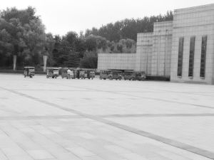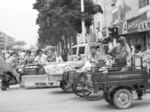 圖①  周口師范學(xué)院大門前又見排成一行的“紅頂三輪車”在從事非法營運,沒人進(jìn)行管理。