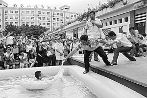 廣東省惠州市教育局高度重視學(xué)校和學(xué)生的安全管理工作,在全市預(yù)防學(xué)生溺水安全專項活動中,創(chuàng)新教育形式,開展防溺水“體驗式”教學(xué)。圖為惠州市教育局在南山學(xué)校舉辦全市中小學(xué)防溺水體驗式教學(xué)觀摩現(xiàn)場會,惠州志愿者救撈隊示范通過立式人鏈智救溺水者。    袁曙文 攝