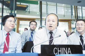 中國土司遺址入選世界遺產(chǎn)名錄      7月4日,在德國波恩舉行的第39屆聯(lián)合國教科文組織世界遺產(chǎn)委員會會議(世界遺產(chǎn)大會)上,中國國家文物局副局長童明康(前中)代表中國政府發(fā)言。中國土司遺址4日在第39屆聯(lián)合國教科文組織世界遺產(chǎn)委員會會議(世界遺產(chǎn)大會)上獲準(zhǔn)列入世界遺產(chǎn)名錄,成為中國第48處世界遺產(chǎn)。新華社發(fā)