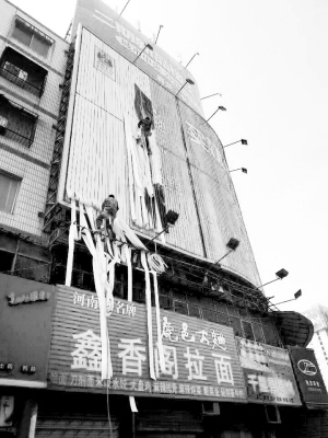 4月9日上午,在周口市區(qū)七一路與大慶路交叉口,兩名工人忙著整修廣告牌,他們“攀附”在墻上的身影,如同電影里的“蜘蛛俠”,讓過往市民無不敬畏勞動者的辛勞與偉大。晚報記者 張志新 攝