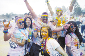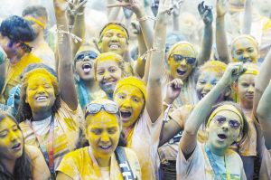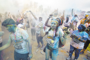 當(dāng)?shù)貢r(shí)間6月13日,在美國洛杉磯,約萬名跑步愛好者在洛杉磯道奇球場外參加“彩色跑”活動(dòng)?!安噬堋笔且豁?xiàng)娛樂跑步項(xiàng)目,全程為5公里,每公里設(shè)置一個(gè)彩色站,當(dāng)參與者跑至彩色站時(shí),由志愿者向參與者拋灑彩色粉末。與傳統(tǒng)跑步競速相比,“彩色跑”活動(dòng)雖然沒有贏家或獎(jiǎng)品,但強(qiáng)調(diào)“參與、娛樂和色彩”的重要性。